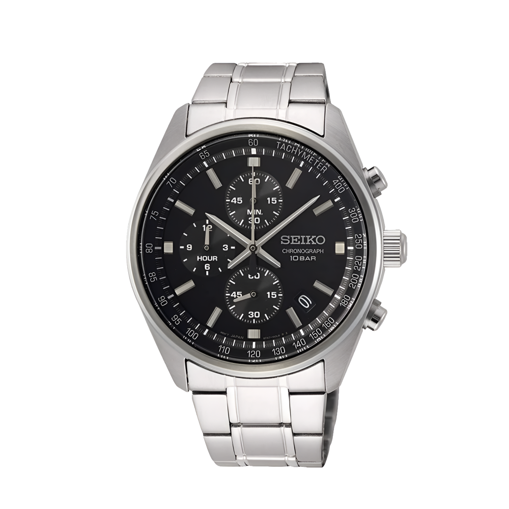هذه الساعة تجسيد للأناقة الرياضية والدقة اليابانية. تأتي مصنوعة من الستانلستيل المقاوم للصدأ وميناء اسود أنيق مزود بمؤشرات فضية وعقارب مضيئة. تتميز بوظائف الكرونوغراف لقياس الوقت بدقة عالية، بالإضافة إلى نافذة عرض التاريخ. الحزام المصنوع من الستانلستيل المقاوم للصدأ يعزز من متانتها ويمنحها مظهراً راقياً. هذه الساعة هي الخيار المثالي للرجل العصري الذي يبحث عن مزيج مثالي بين الأداء المتفوق والتصميم الأنيق.