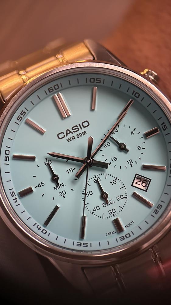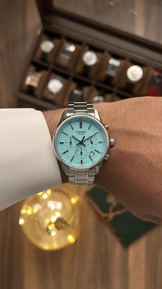 ساعة تناظرية معدنية رائعة بتصميم كرونوغراف رياضي تحبه والشاشة التفصيلية التي تحتاجها. تعرض ثلاثة أقراص مدمجة الوقت على مدار 24 ساعة وساعة توقيت للثواني وساعة توقيت للدقائق. مقاومة للماء حتى عمق 50 مترًا تحررك من القلق، حتى في الأيام الممطرة.
