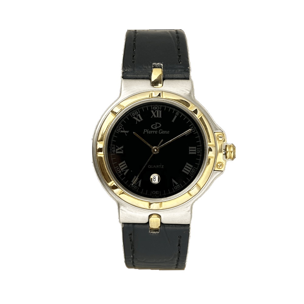 - المواد: هيكل من الستانلس ستيل (المطلي باللون الذهبي) مع حزام من الجلد.