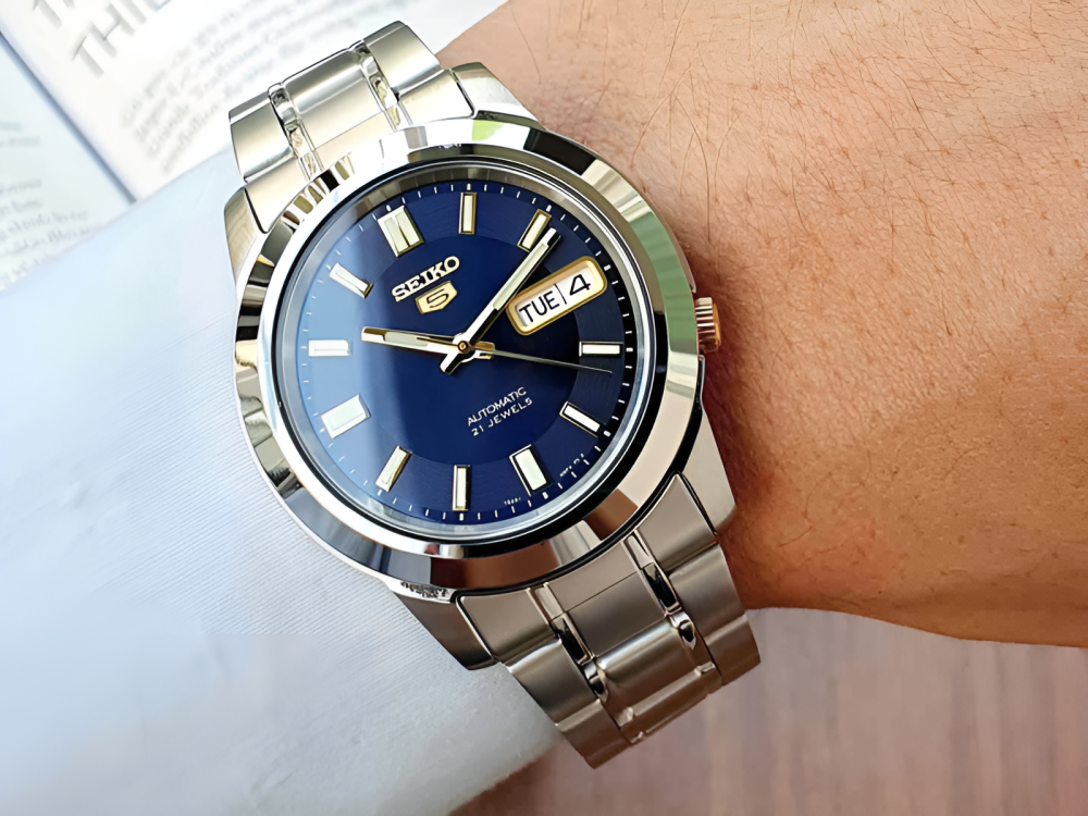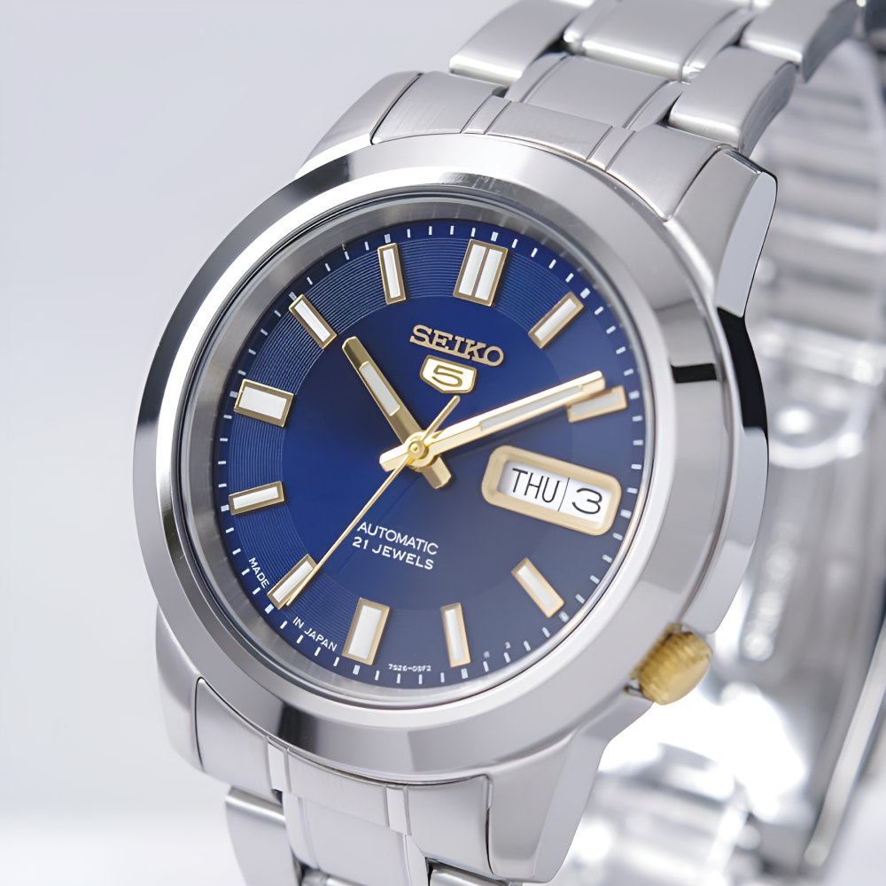 تتميز هذه الساعة بميناء أزرق فاخر مع مؤشرات وعقارب ذهبية تضفي عليها لمسة من الأناقة. تأتي بحزام من الستانلس ستيل المقاوم للصدأ، مع نافذة عرض اليوم وال...