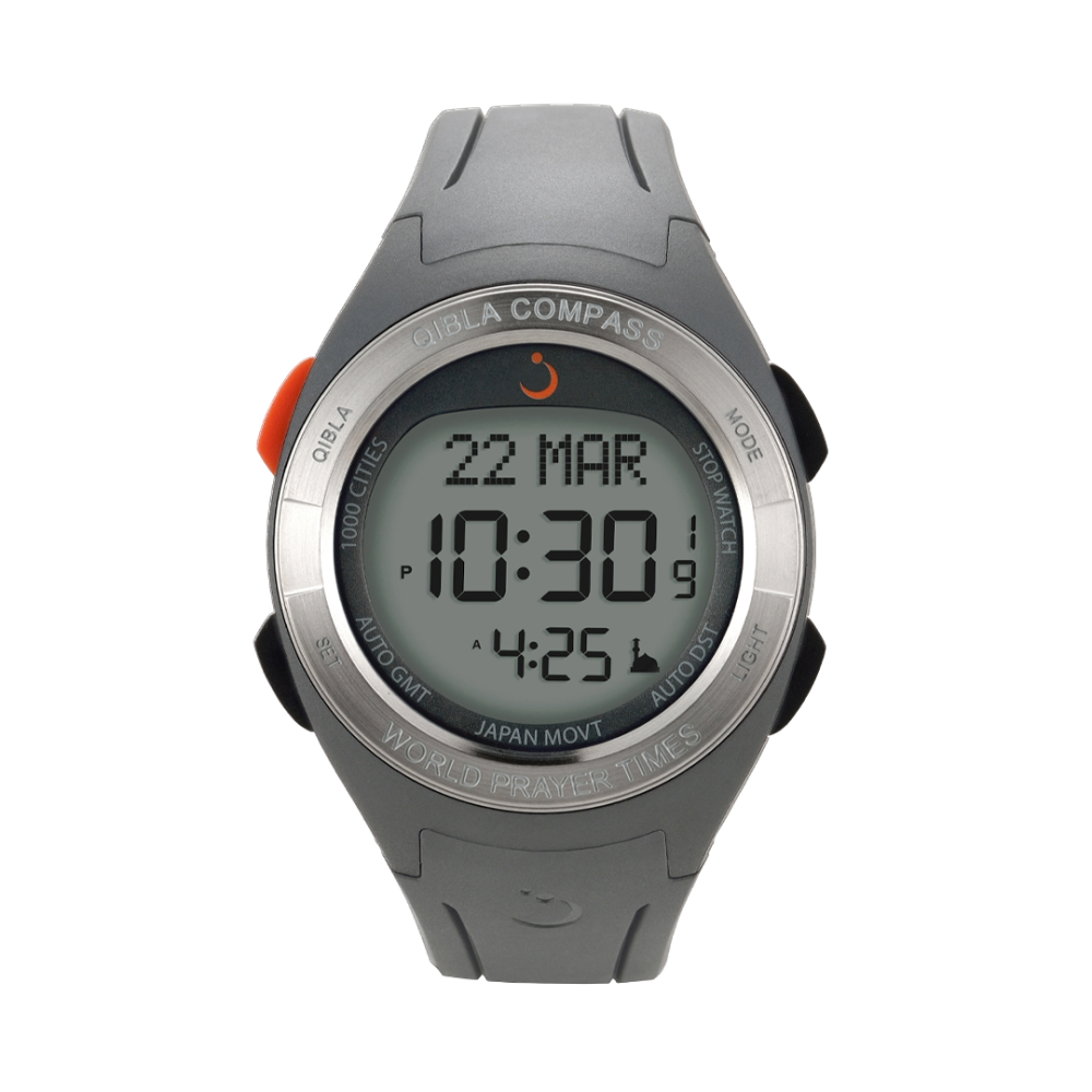 ساعة ذات إطار دائري وحـزام من البلاستيـك، مزودة بـشاشة بـلوريـة FSTN مع إضـاءة خلفيـة. زر مخصص لتحديد اتجاه القبلة.خصائص الساعة:مواقيت الصلاة في جميع ...