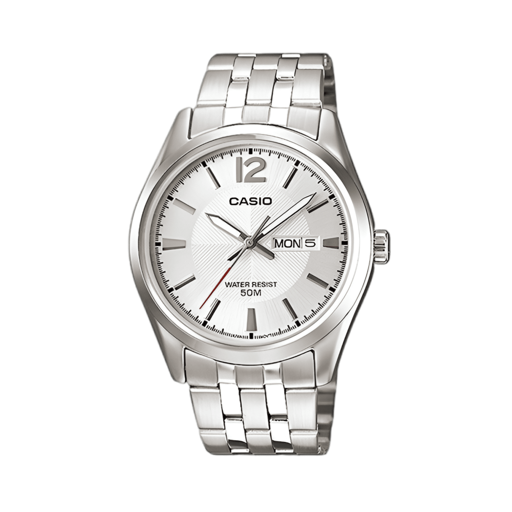 تصميم أنيق وعصري، تجمع بين الأناقة والعملية. تتميز بميناء أبيض جريء مع مؤشرات وعقارب فضية بارزة، وسوار معدني متين يوفر راحة وأسلوبًا فاخرًا. مقاومة للماء حتى عمق 50 مترًا، مما يجعلها مثالية للاستخدام اليومي والمناسبات. تظهر التاريخ واليوم لتلبية احتياجاتك اليومية. الاختيار الأمثل لمحبي الأناقة العملية!