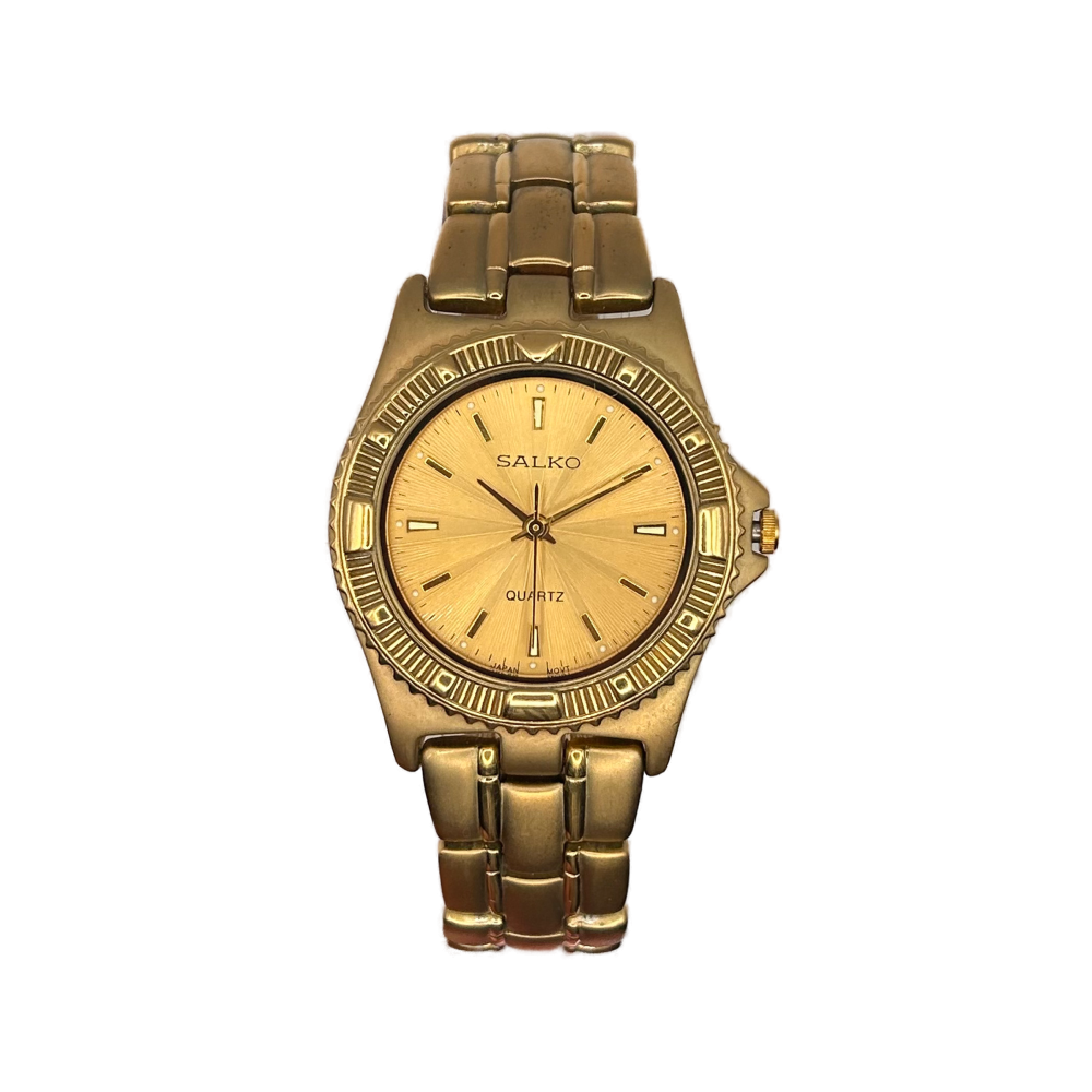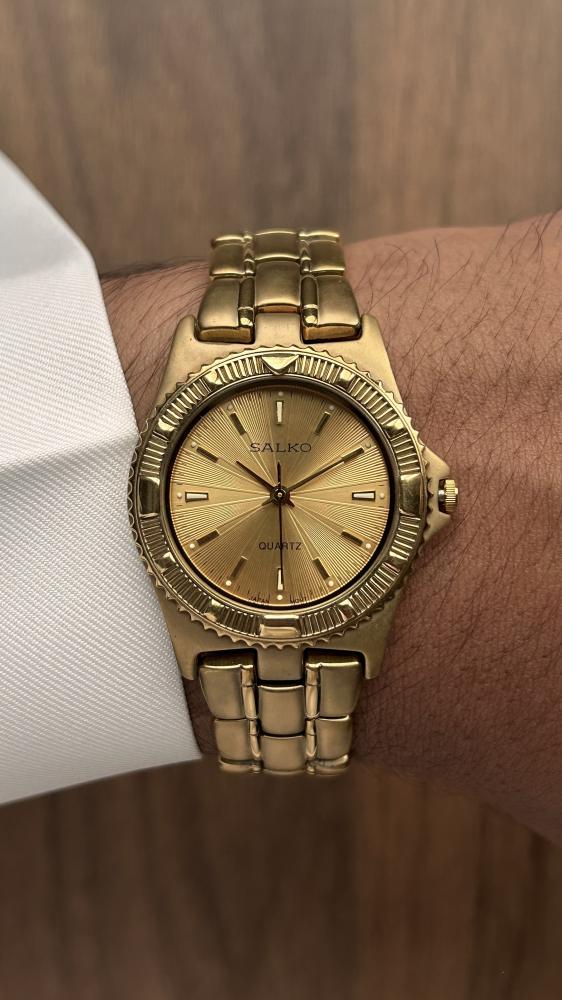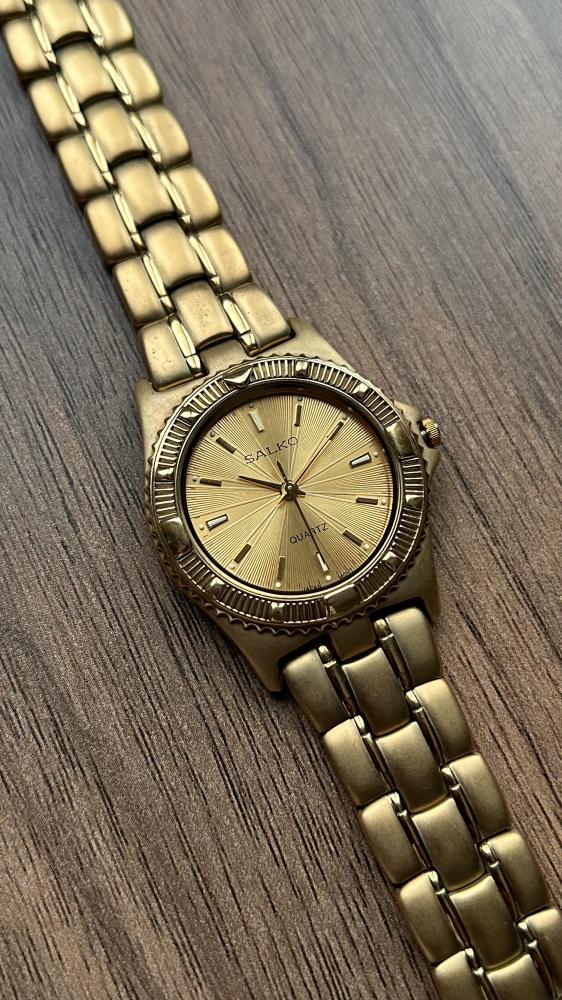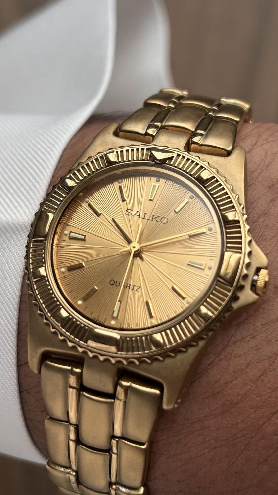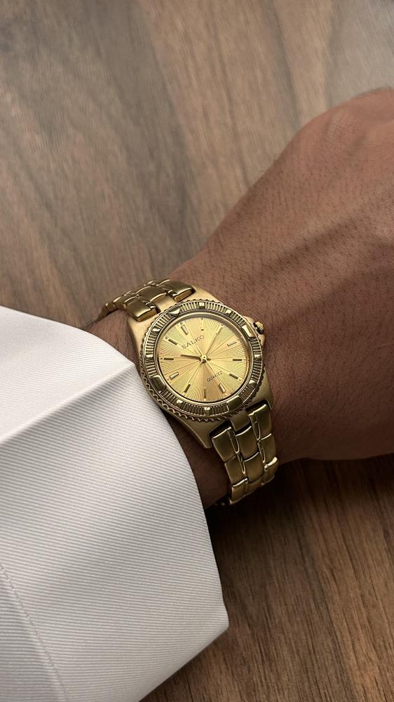 المـــــــعلومات الأســـــــاسية:الموديل: سالكوالقطر: حوالي 32 ملم، حجم مثالي لمعصمك ليبرز أناقتك.المواد: هيكل من الستانلس ستيل (المطلي باللون الذهبي)...